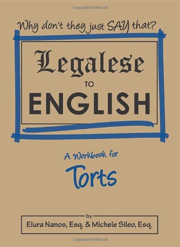 There is, and it's called Legalese to English: Torts! Nanos and Sileo are at it again, breaking down tough concepts and confusing cases into nice, easy, bite-sized pieces with their newest title, Legalese to English: A Workbook for Torts!